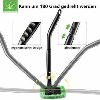 The car window cleaner is equipped with a 180 degree rotating head of the car cleaning wand. which adapts very well to the curved glass surface. removing dirt and dust from the windshields or glass of the car. saving you more effort